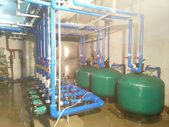 The Sand Filter is a single, dedicated component of a filtration system which is a large tank filled with special-grade silica sand. It's a primary component that must be connected to a separate pump, pipes, and valves.So it needs a enough large space to install these equipment.
